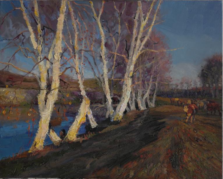俄罗斯油画对中国油画发展有深远影响,上个世纪五十年代,中国公派大批留学生赴前苏联学习油画,从而为中国油画的发展,奠定了良好基础。此外,俄罗斯油画家也不断到中国传授画技,马克西莫夫油画训练班在中国的举办更是筑就了中国现代油画之路。此次画展中的俄方作品,主要汇聚了列宾美术学院的亚历山大▪贝斯特洛夫、叶甫盖尼▪祝波夫、尼基塔▪法明、亚历山大▪诺沃肖洛夫等八位画家50余件作品。画家可分为老中青三代,较为完整的体现了俄罗斯油画的传承与发展。就中国而言,油画虽是中西文化交流中的舶来艺术,但经过几代画家的努力,油画已融入本土成为中国绘画的重要形式。此次画展中的中国部分,集中呈现了中国油画院、中央美术学院杨飞云、朱春林、龙力游、石磊、王其钧、田海鹏等十三位著名画家的佳作。有幽静宁谧的田园风光,有辛勤耕作的劳动人民,有夏日海港,有金秋白桦……他们很好的运用油画这种国际化语言讲述中国故事,表达中国人的情感和精神世界。